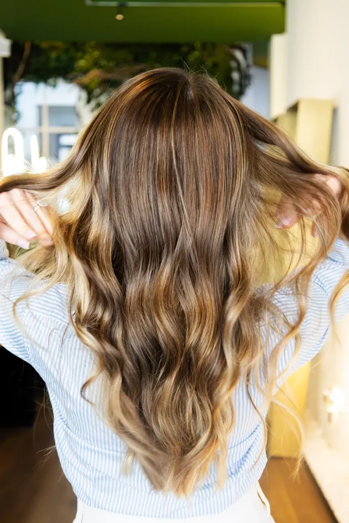 Many clients also choose this time of year to brighten their color. Soft highlights or subtle reflections can add depth and luminosity, capturing the natural light of the season while maintaining a natural, effortless look.